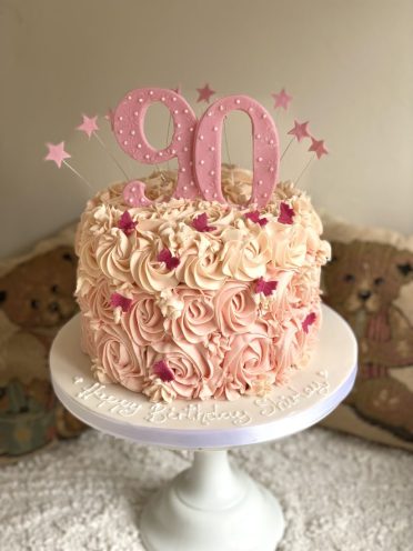 90th pink buttercream birthday cake