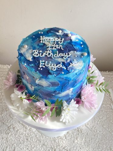 Blue buttercream birthday cake